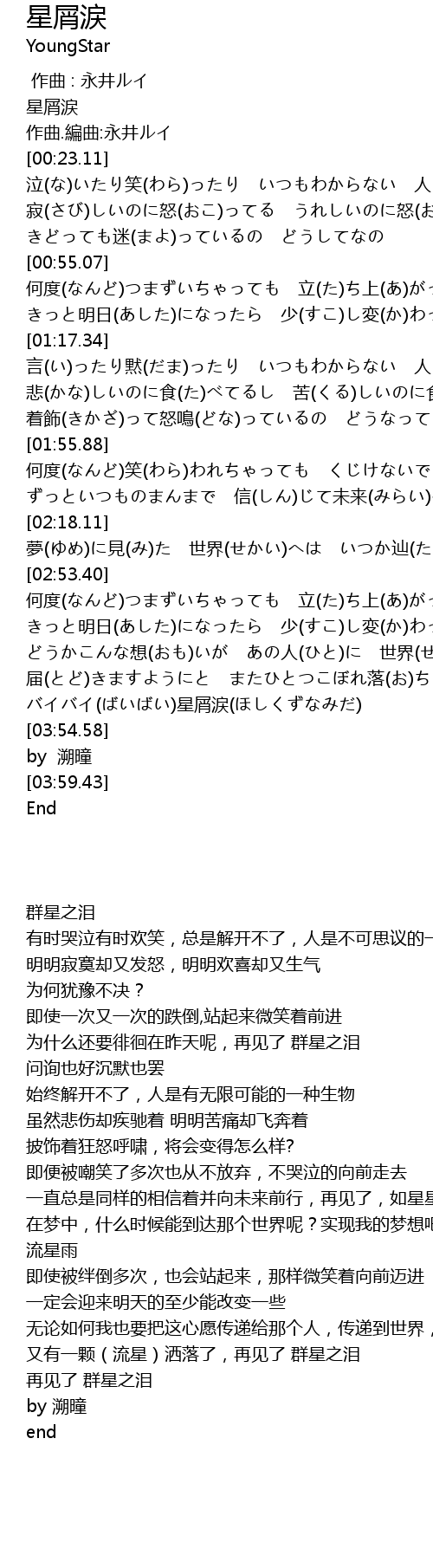 | [03:49.69] | バイバイ(ばいばい)星屑涙(ほしくずなみだ) |