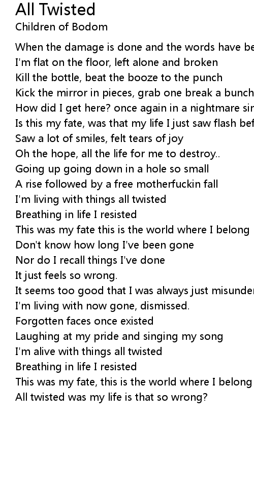 I'm alive with things all twisted |