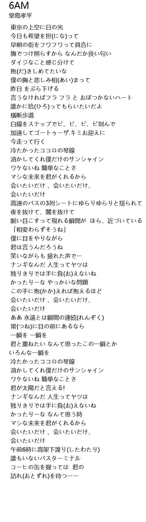 | [03:06.74] | 午前6時に高架下渡り(したわたり) |