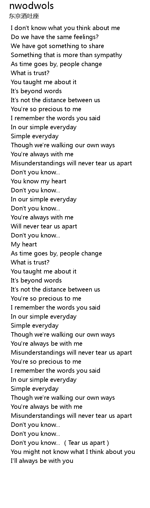 | [05:36.611] | Don' t you know... Tear us apart |