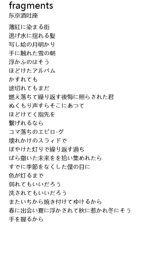 | [04:20.53] | 春に出会い夏に浮かされて秋に惹かれ冬にそう |