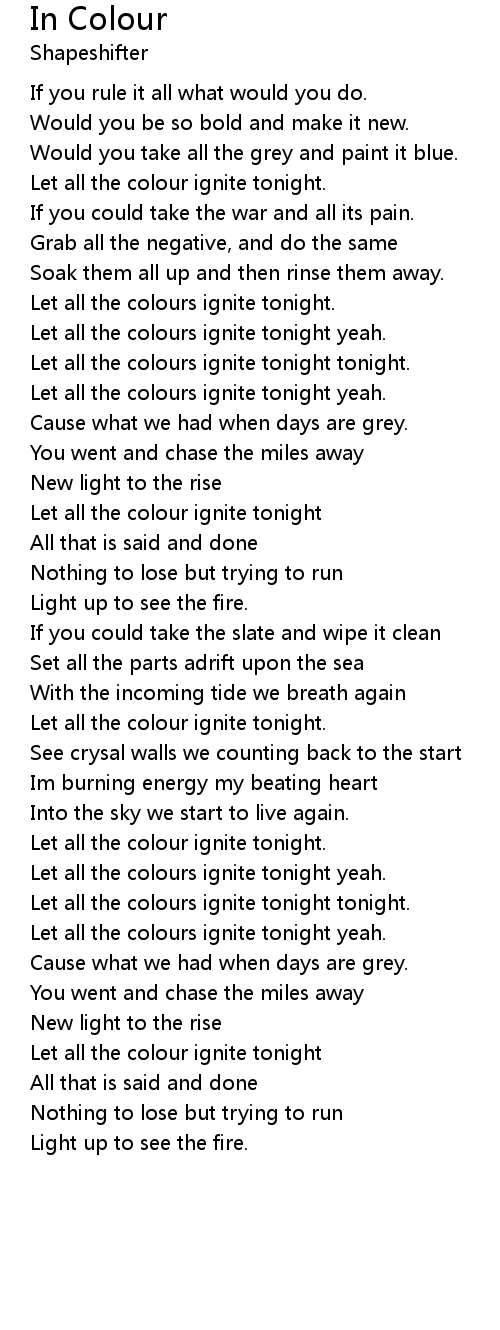 In Colour Lyrics