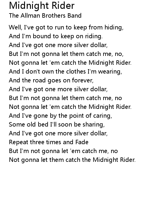 Not gonna let 'em catch the Midnight Rider. |