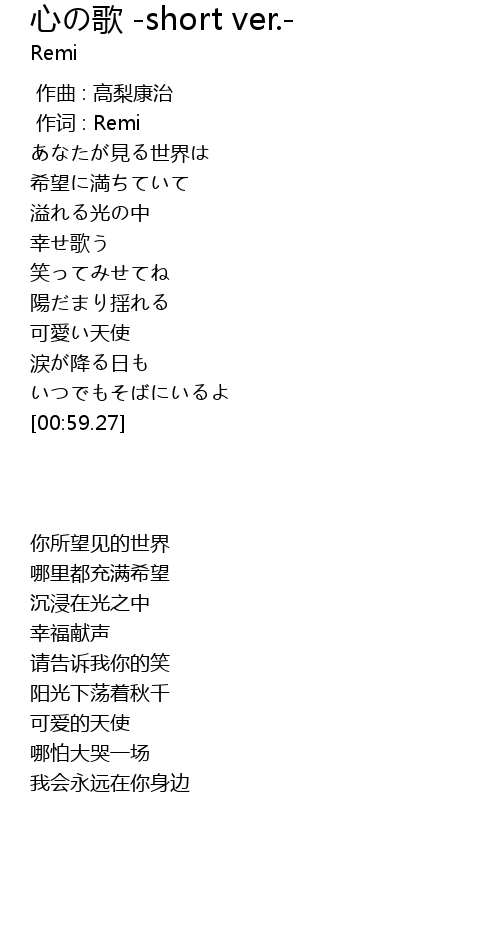 | Song | 心の歌 -short ver.- |