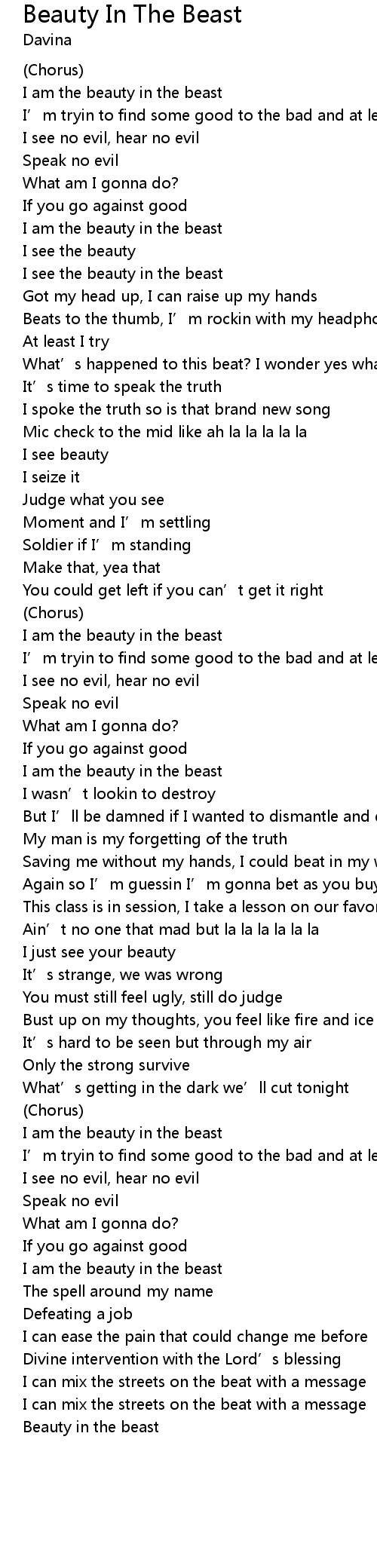 | I am the beauty in the beast | |