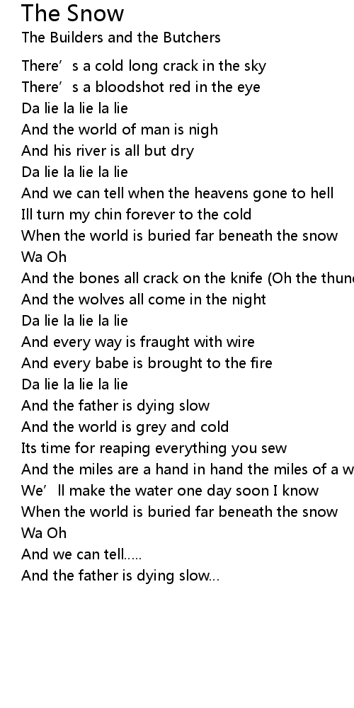 | And the bones all crack on the knife Oh the thunder crack and the light | |