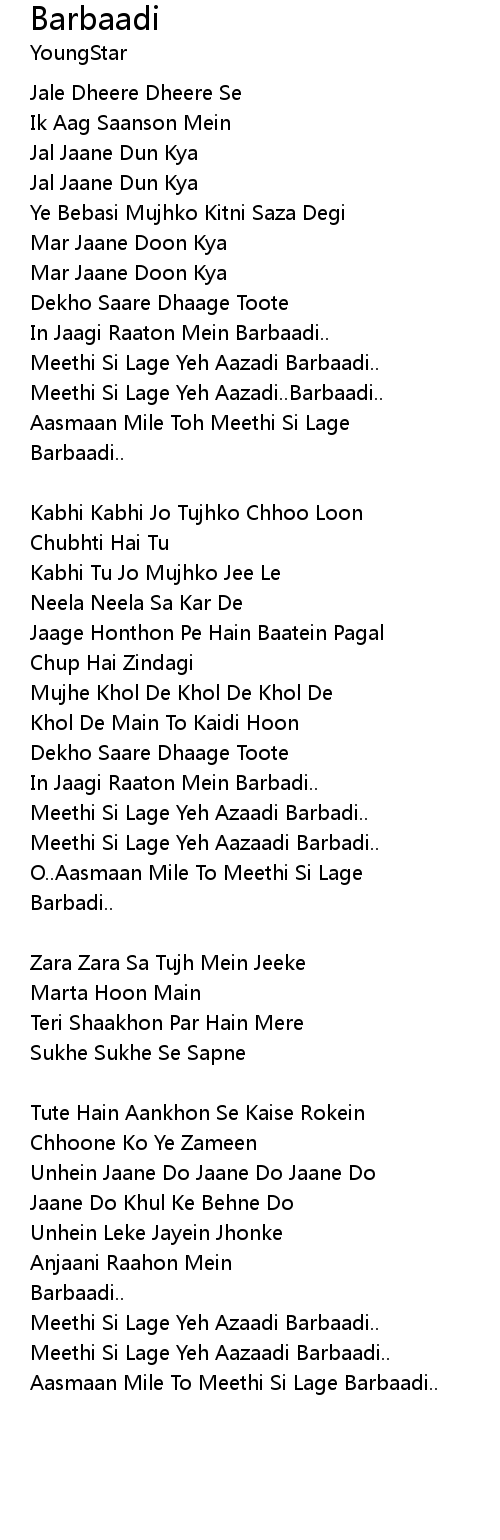 | Aasmaan Mile To Meethi Si Lage Barbaadi.. |