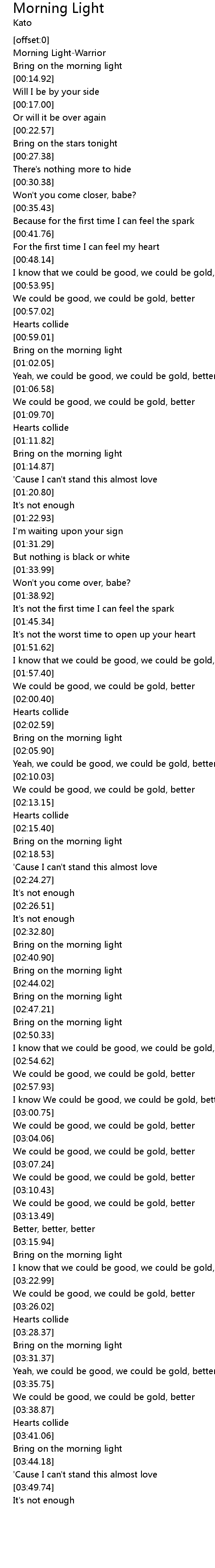 | [03:36.81] | We could be good, we could be gold, better |