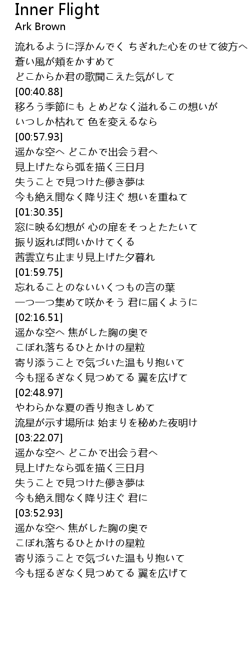 | [00:58.17] | 遥かな空へ どこかで出会う君へ |