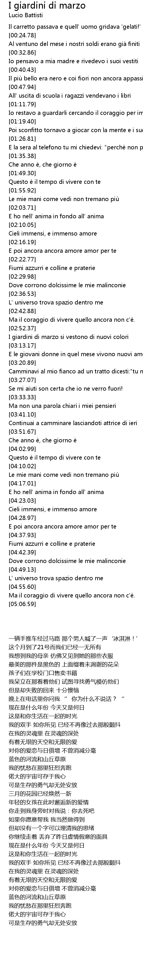 | [02:56.55] | I giardini di marzo si vestono di nuovi colori |