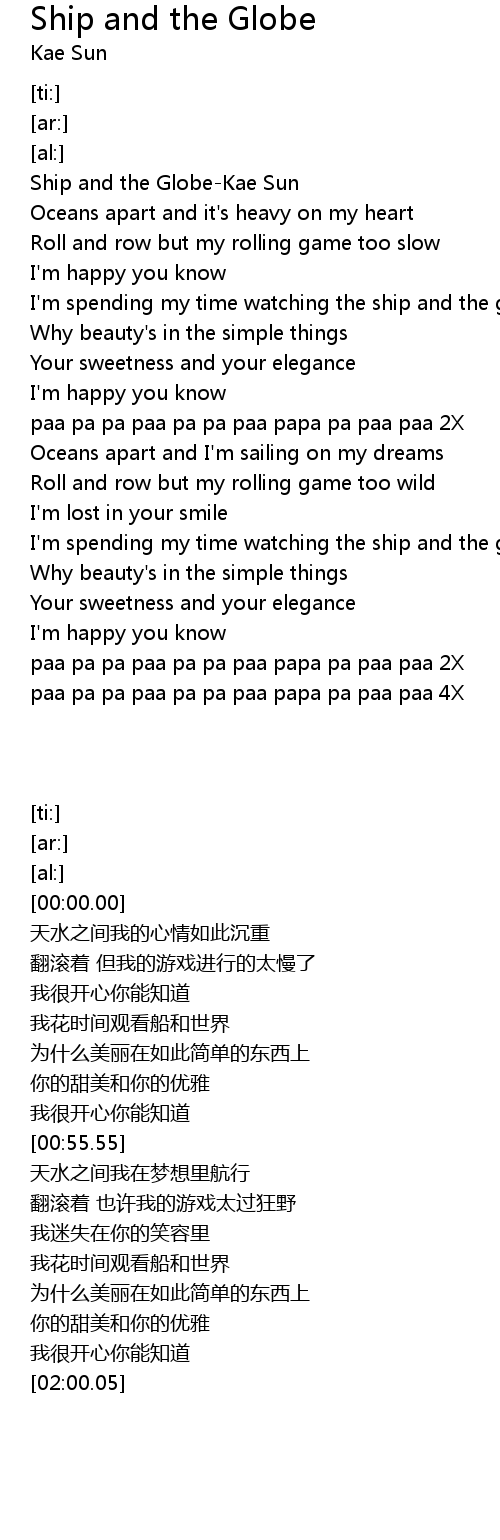 | [00:00.00] | Ship and the Globe-Kae Sun |
