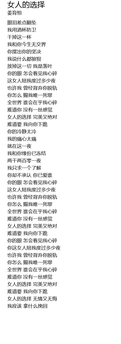 | [04:22.700] | 女人的选择 无情又无悔 |
