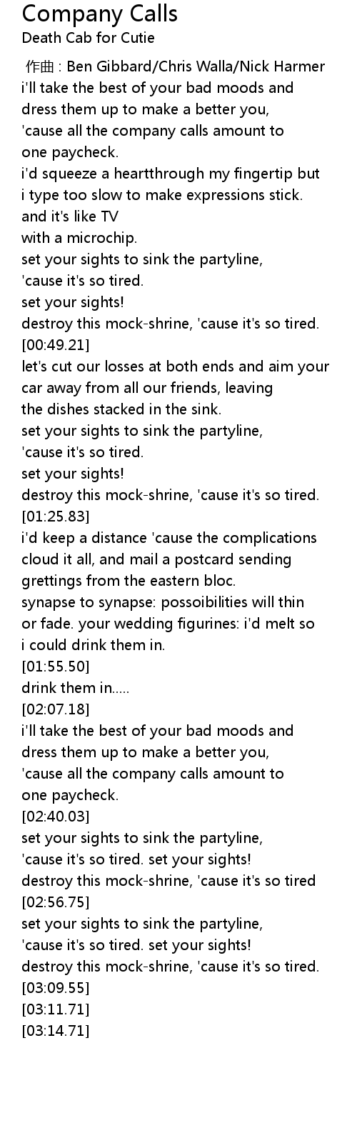 | [00:00.00] | 作曲 : Ben Gibbard/Chris Walla/Nick Harmer |