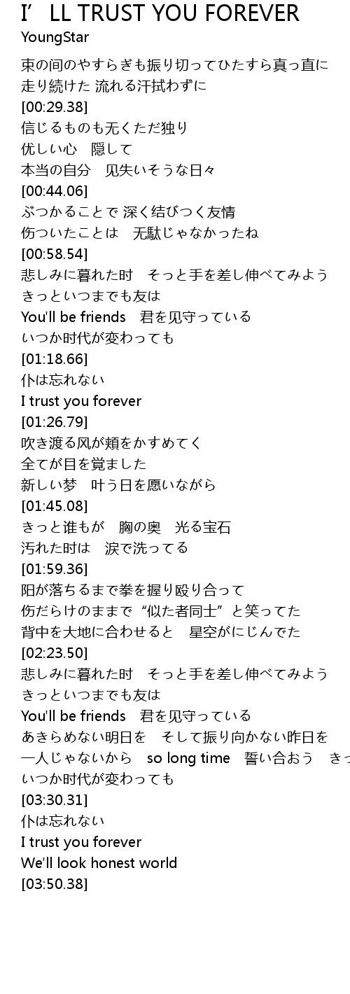 | [03:19.75] | 一人じゃないから so long time 誓い合おう きっと |