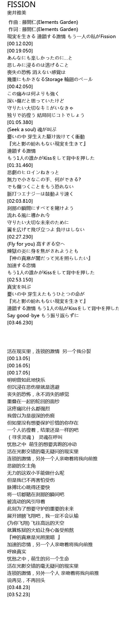 | [00:00.700] | 現実を生きる 連鎖する激情 もう一人の私がFission |