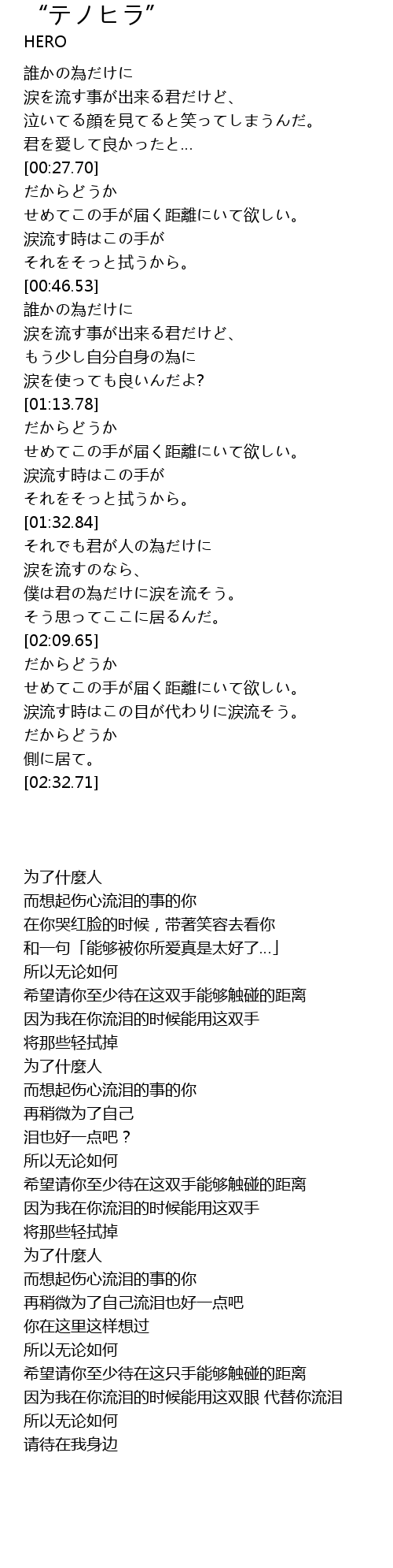 | [02:02.35] | 僕は君の為だけに涙を流そう。 |