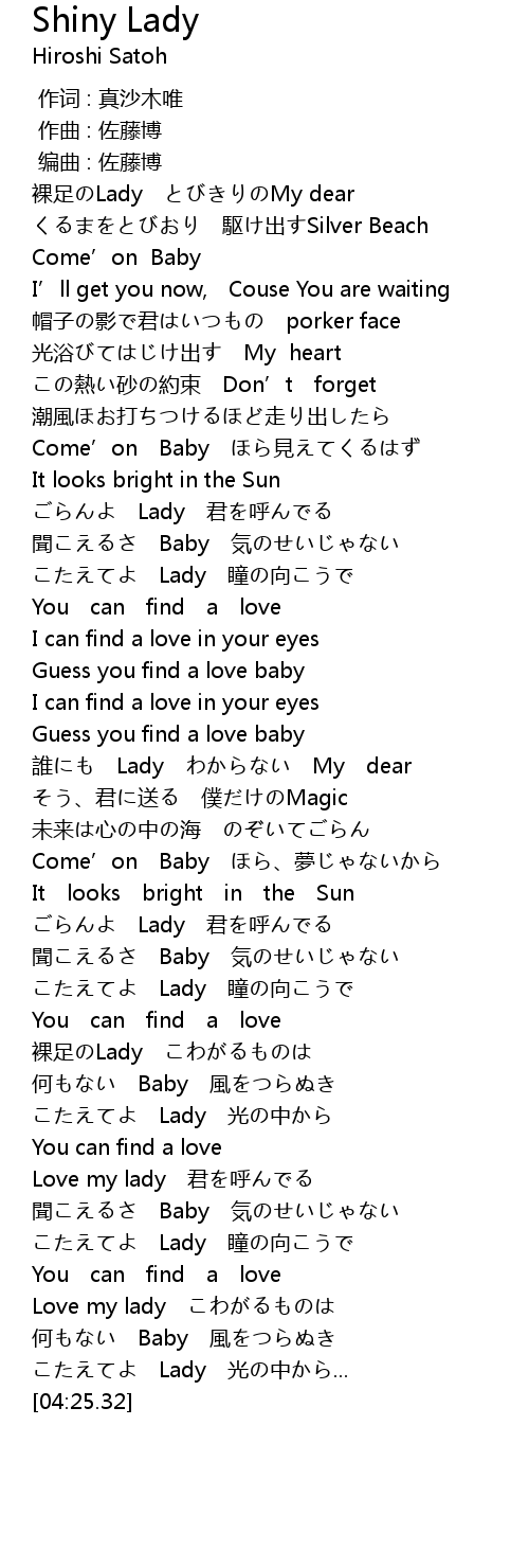 | [04:16.04] | こたえてよ Lady 光の中から... |