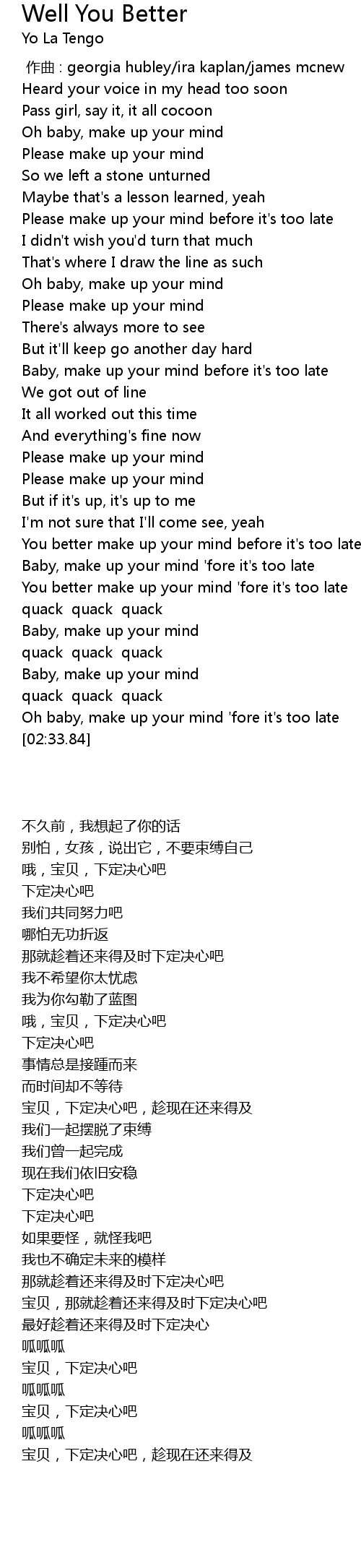 | [01:54.37] | Baby, make up your mind ' fore it' s too late |