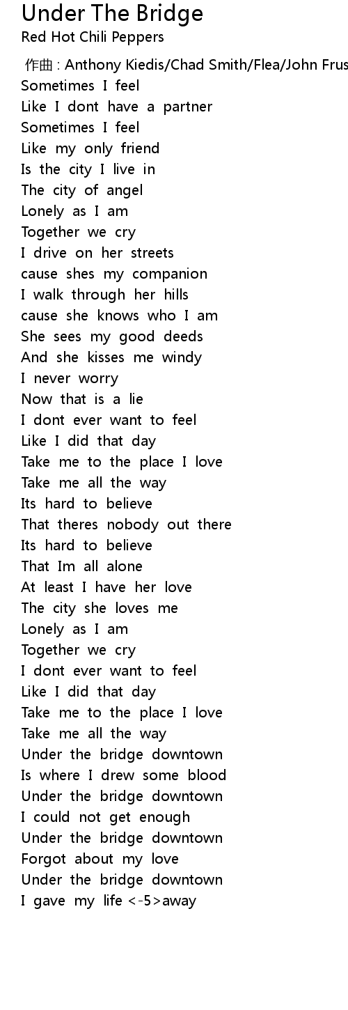 | [00:00.00] 作曲 : Anthony Kiedis/Chad Smith/Flea/John Frusciante] | |