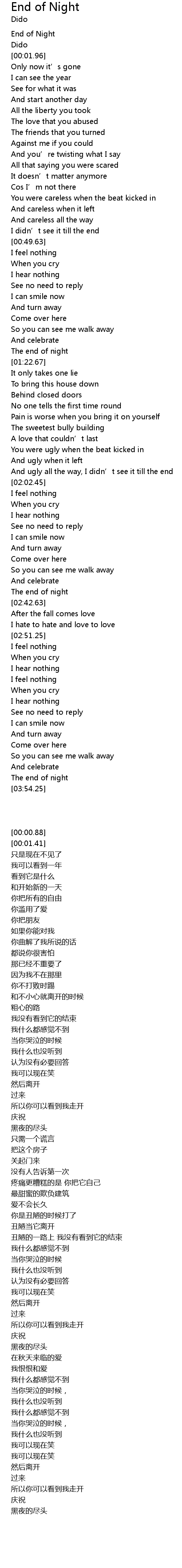 | [00:00.88] | End of Night |