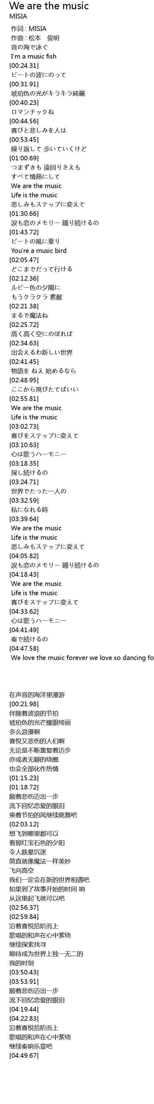 | [04:49.67] | We love the music forever we love so dancing forever |