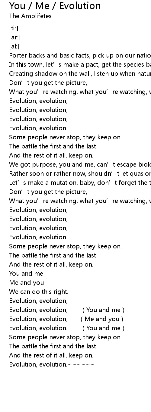 | [02:49.54] | Evolution, evolution, (Me and you) |