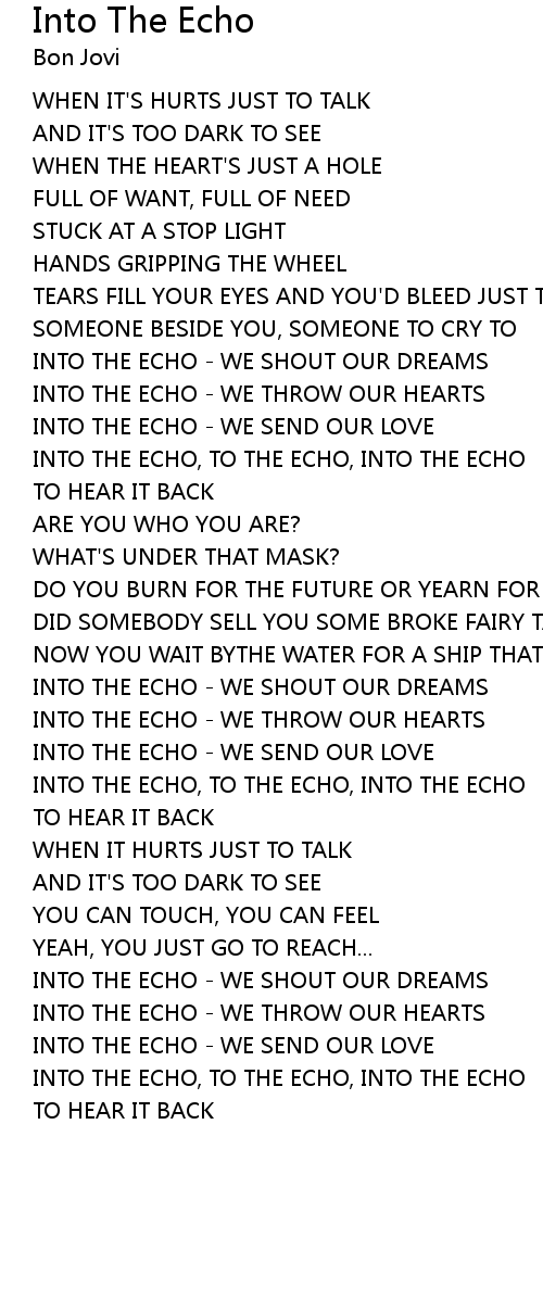 INTO THE ECHO, TO THE ECHO, INTO THE ECHO