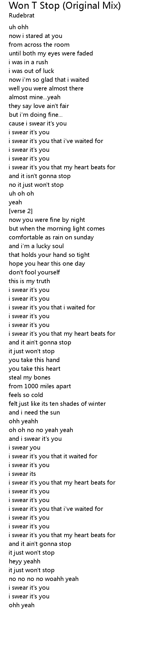Won T Stop (Original Mix) Lyrics