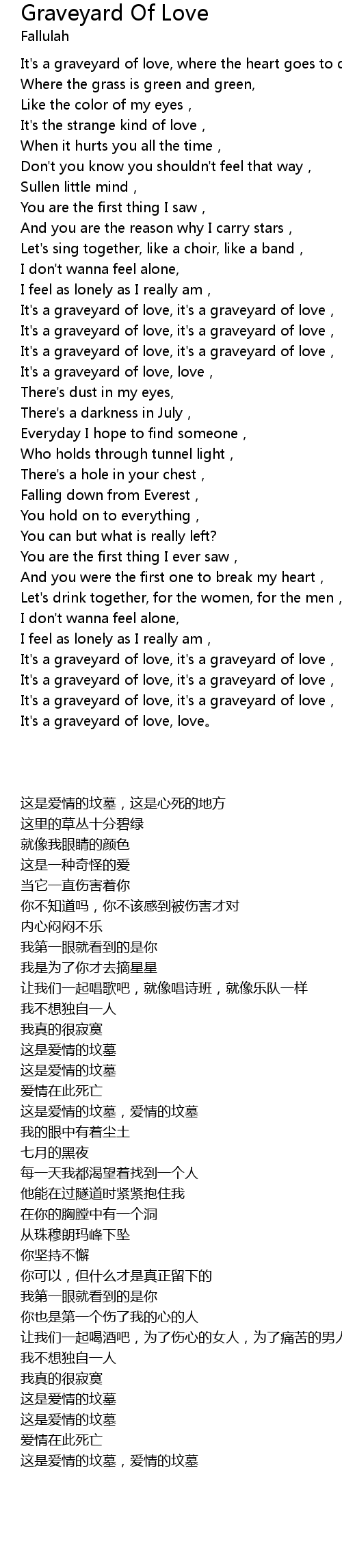 | [01:02] | It' s a graveyard of love, it' s a graveyard of love, |