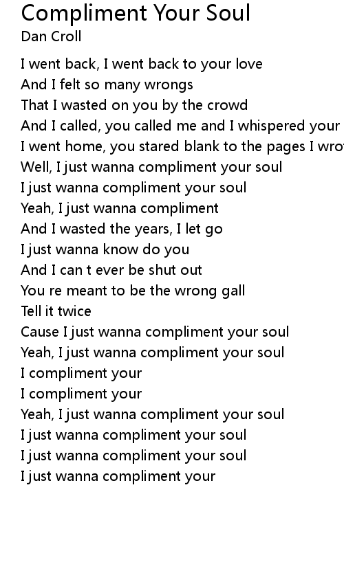 Well, I just wanna compliment your soul |