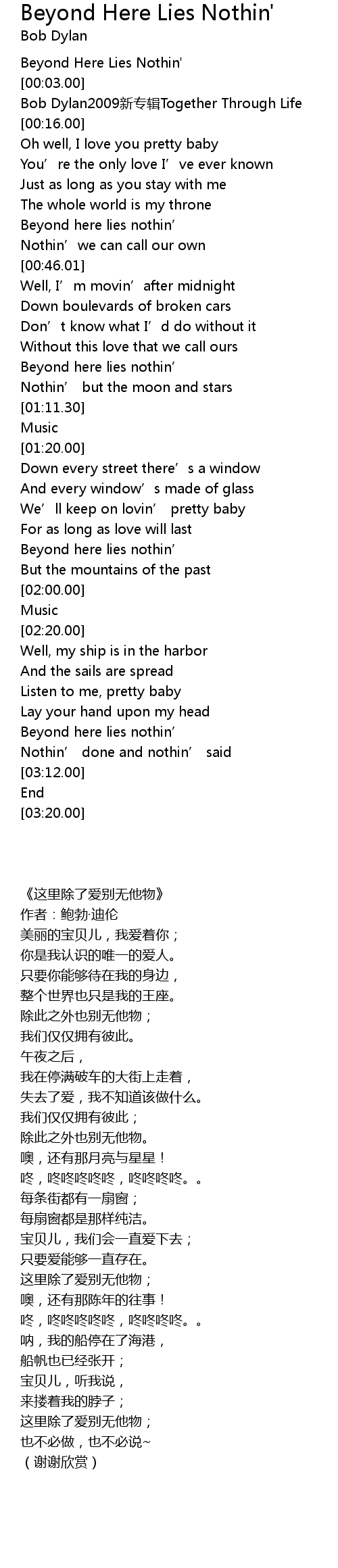| [00:01.20] | Beyond Here Lies Nothin' |