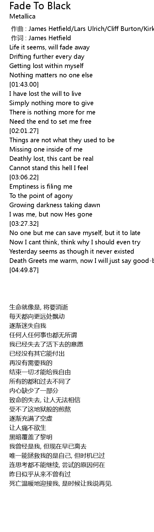 | Song | Fade To Black |