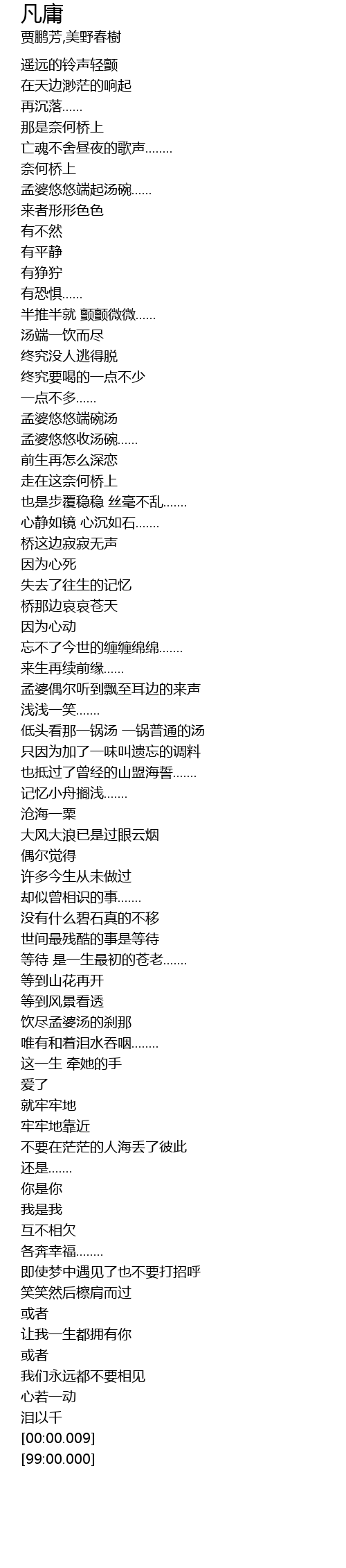| [03:21.08] | 孟婆偶尔听到飘至耳边的来声 |