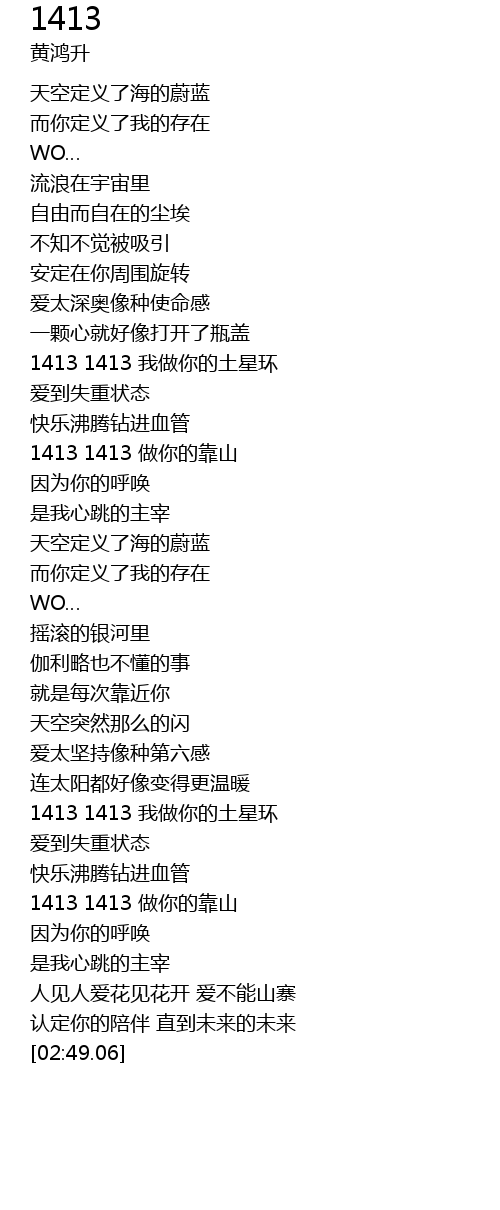 | [00:46.18] | 1413 1413 我做你的土星环 |