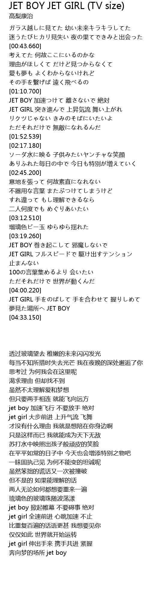| [03:33.800] | JET GIRL qū chū zhǐ |