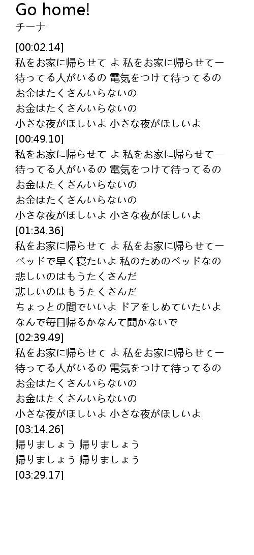 私をお家に帰らせて よ 私をお家に帰らせてー |