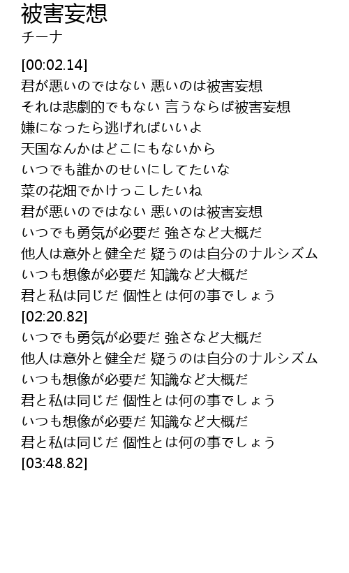 | [00:38.81] | 君が悪いのではない 悪いのは被害妄想 |