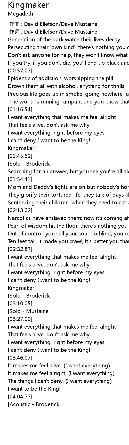 | [00:01.00] | 作词 : David Ellefson/Dave Mustaine |