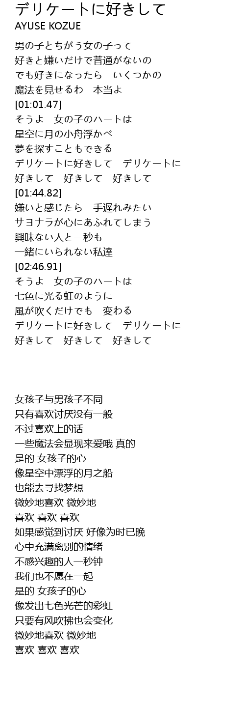 | [01:36.46] | デリケートに好きして デリケートに |
