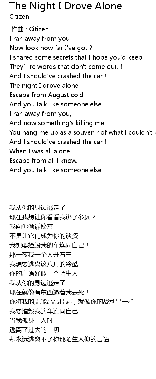 | [00:21.695] | The night I drove alone. |