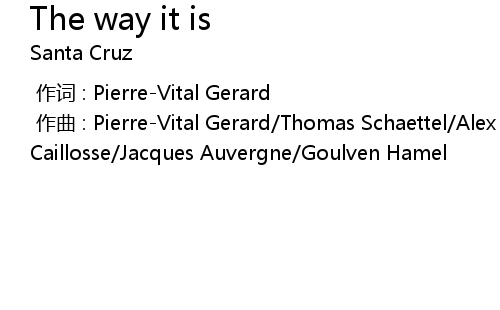 | [00:00.000] | 作曲 : Pierre-Vital Gerard/Thomas Schaettel/Alex Tual/Vassili Caillosse/Jacques Auvergne/Goulven Hamel |
