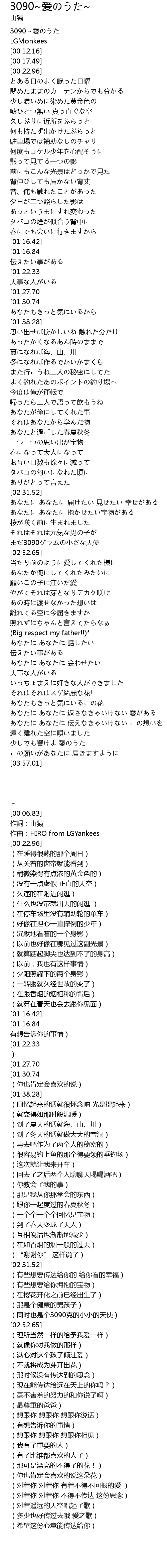 | [03:14.59][01:16.84] | あなたに あなたに 話したい 伝えたい事がある |