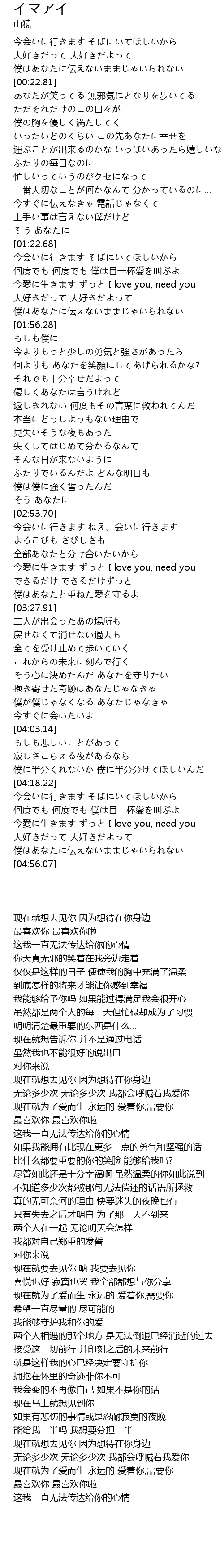 | [03:06.30] | 今愛に生きます ずっと I love you, need you |