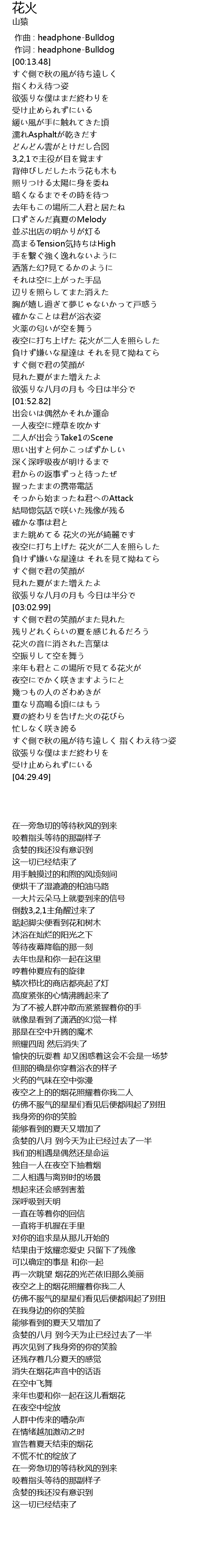 | [04:03.36] | 夏の終わりを告げた火の花びら |