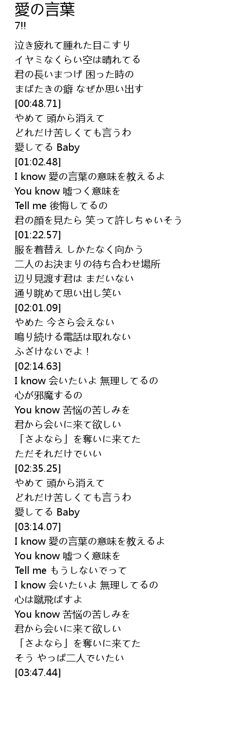 | [03:14.32] | I know 愛の言葉の意味を教えるよ |