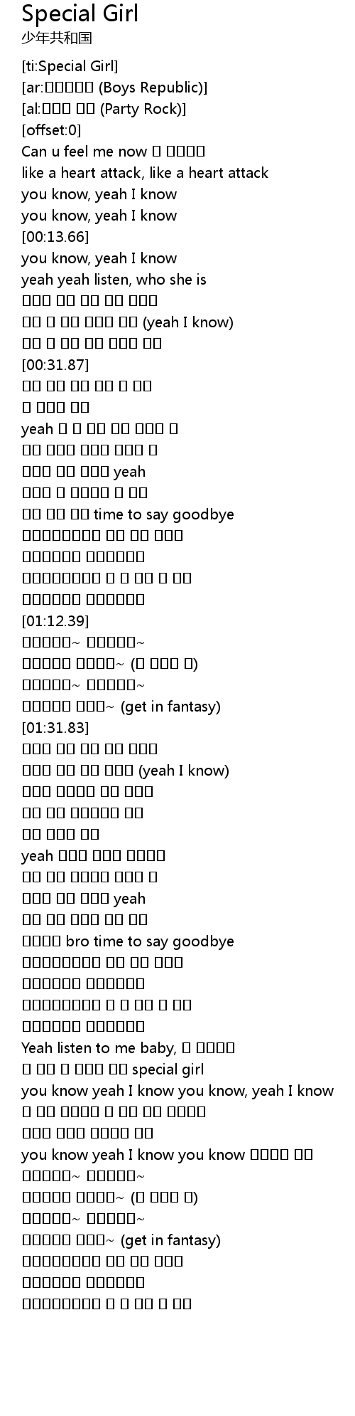 | [02:36.19] | 넌 모든 게 완벽한 나의 special girl |