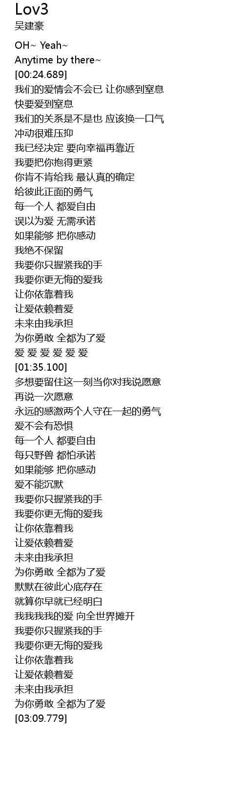 | [01:09.680] | 我要你更无悔的爱我 |
