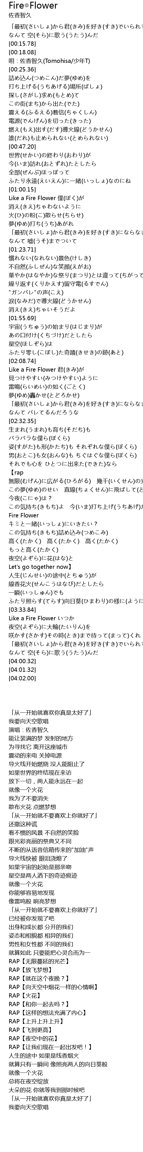 | [03:34.08] | Like a Fire Flower |