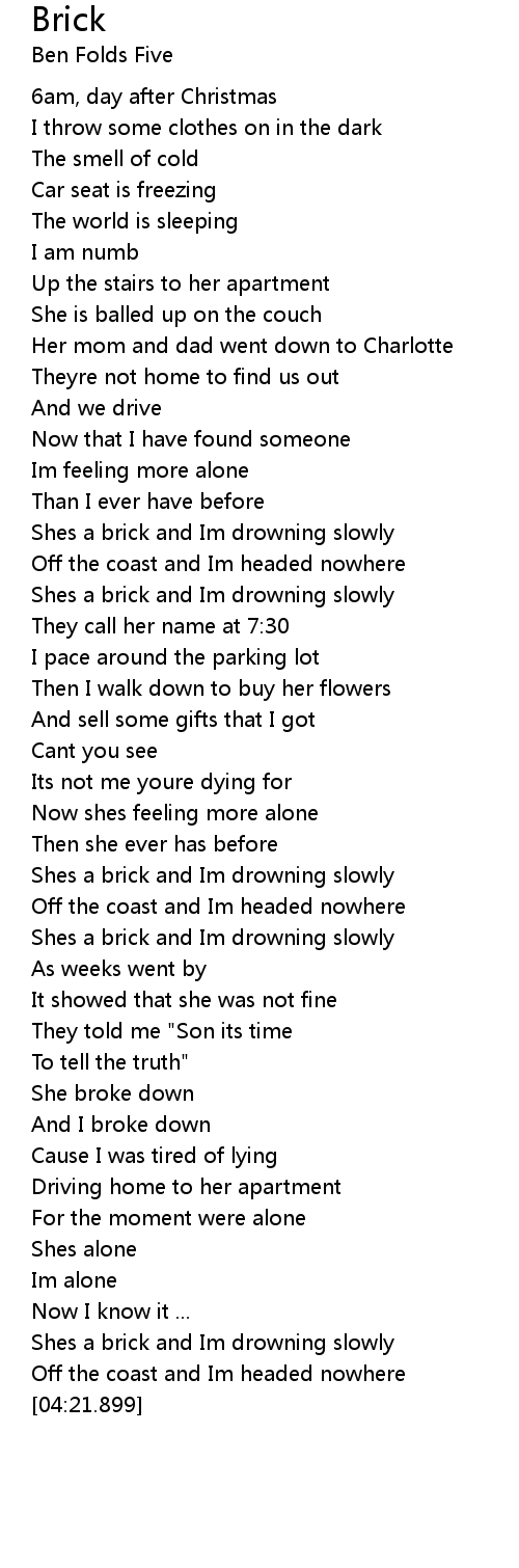 Shes a brick and Im drowning slowly |