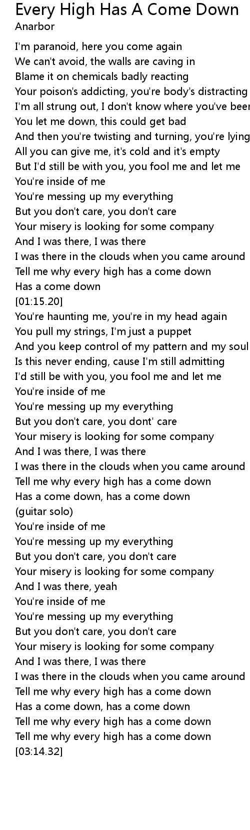 | [03:00.62] | Has a come down, has a come down |